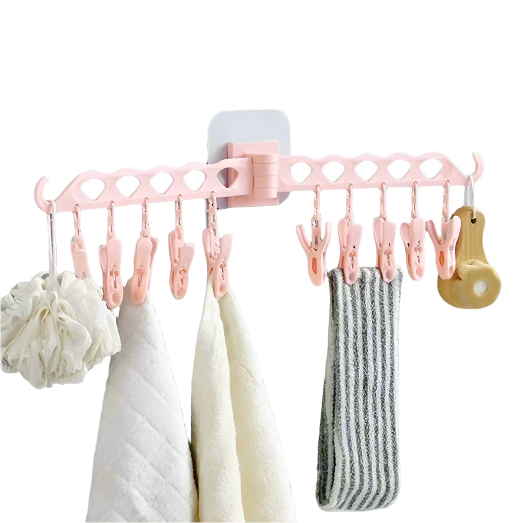 Product Description: Organize your laundry with ease using the 10 Clip Multifunctional Self Adhesive Cloth Hanger, a versatile solution for drying small clothing items like undergarments, socks, and hand towels. This hanger features a compact design with 10 clips that securely hold garments in place, optimizing space in your bathroom, home, or laundry room. Its adhesive backing allows for easy installation on walls or smooth surfaces, providing convenient access to air-dry items quickly and efficiently. Product Usage: