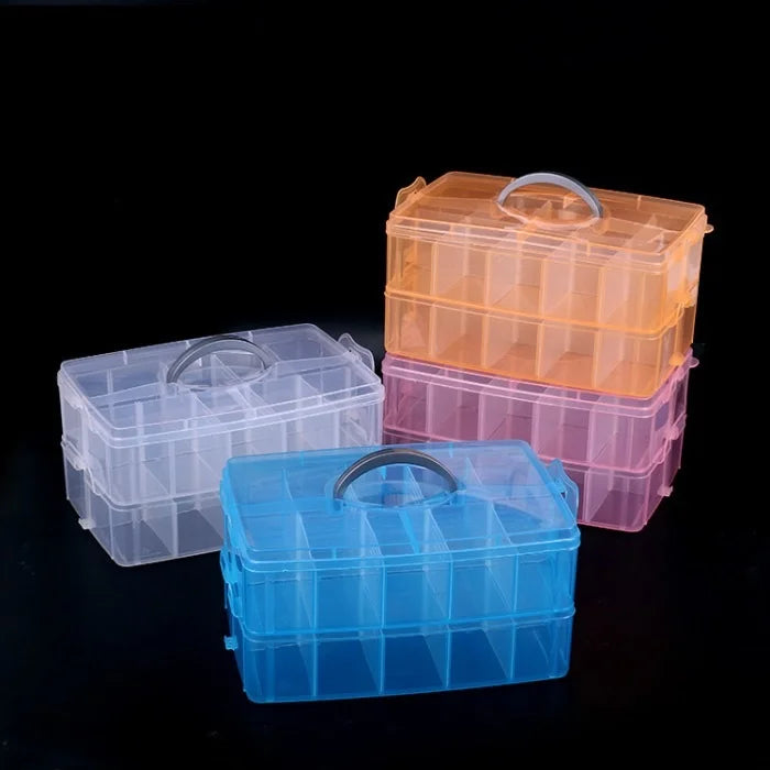 2-layer organizer box | 20-grid storage container | jewelry organizer box | bead storage case | Plastic craft organizer | sewing kit storage box | multi-compartment organizer | small parts storage box | portable storage container | stackable organizer box