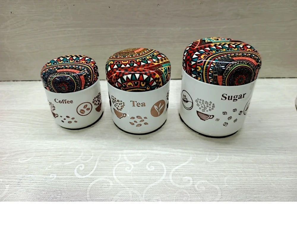 (3 pcs set ) Printed Tea Coffee Sugar Canisters