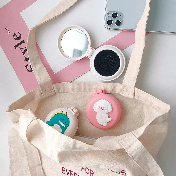 Cartoon Mini Mirror | Mini Mirror with Comb | Pocket Mirror for Travel | Cute Mini Hair Comb Set | Random Print Mini Mirror | Portable Makeup Mirror | Mini Pocket Mirror with Comb | Travel Hair Accessories
