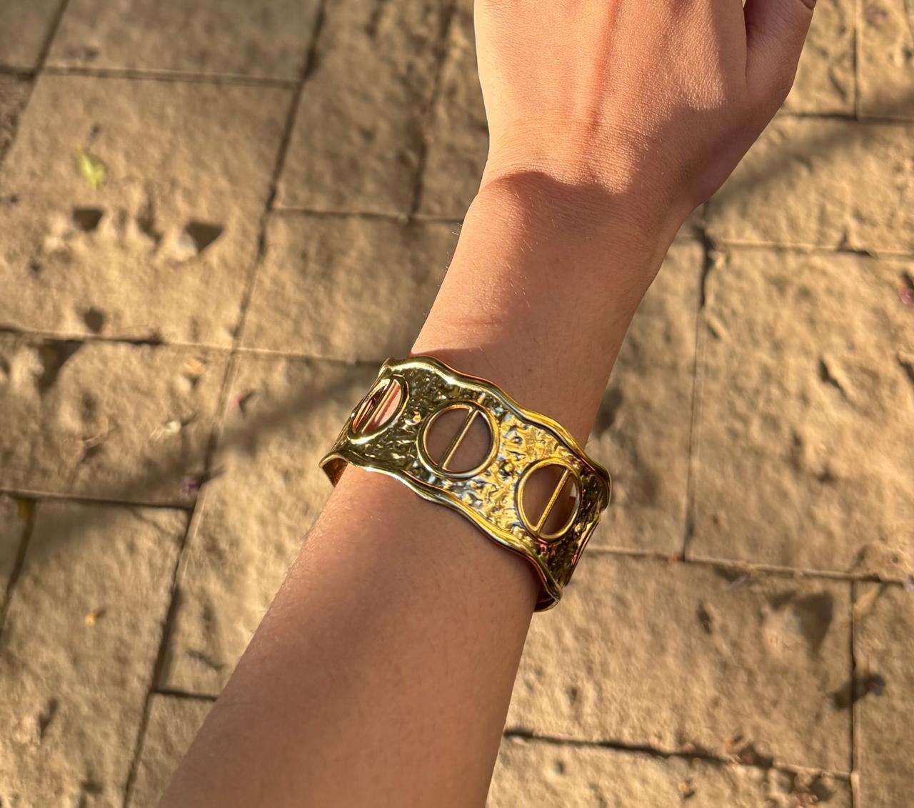 Ideal for those who appreciate statement accessories, this chunky textured cuff offers a perfect balance of style and substance, making it a standout piece for any occasion.