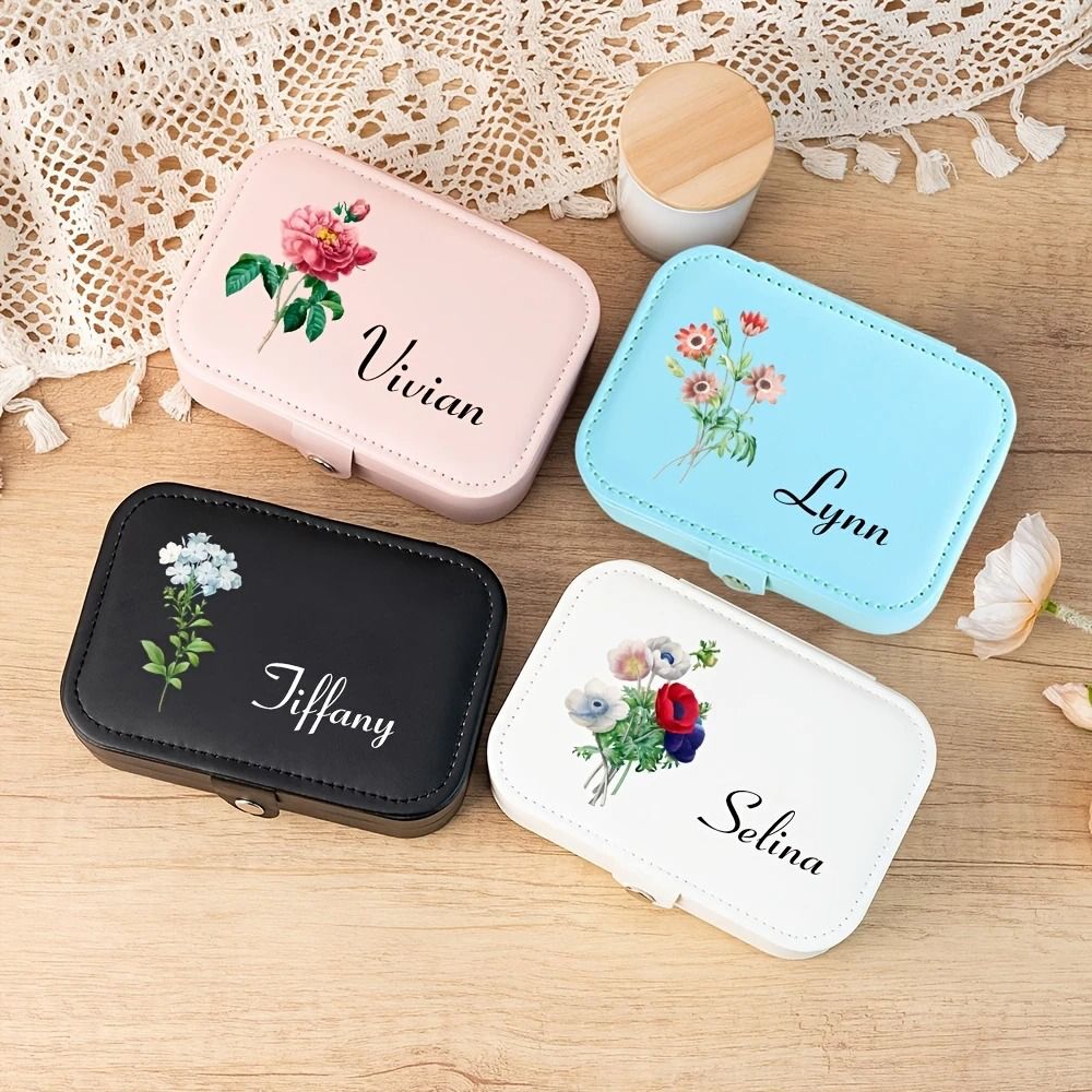 Customised Jewellery Box - Large Capacity Jewelry Box - Birthday Flower Print + Name