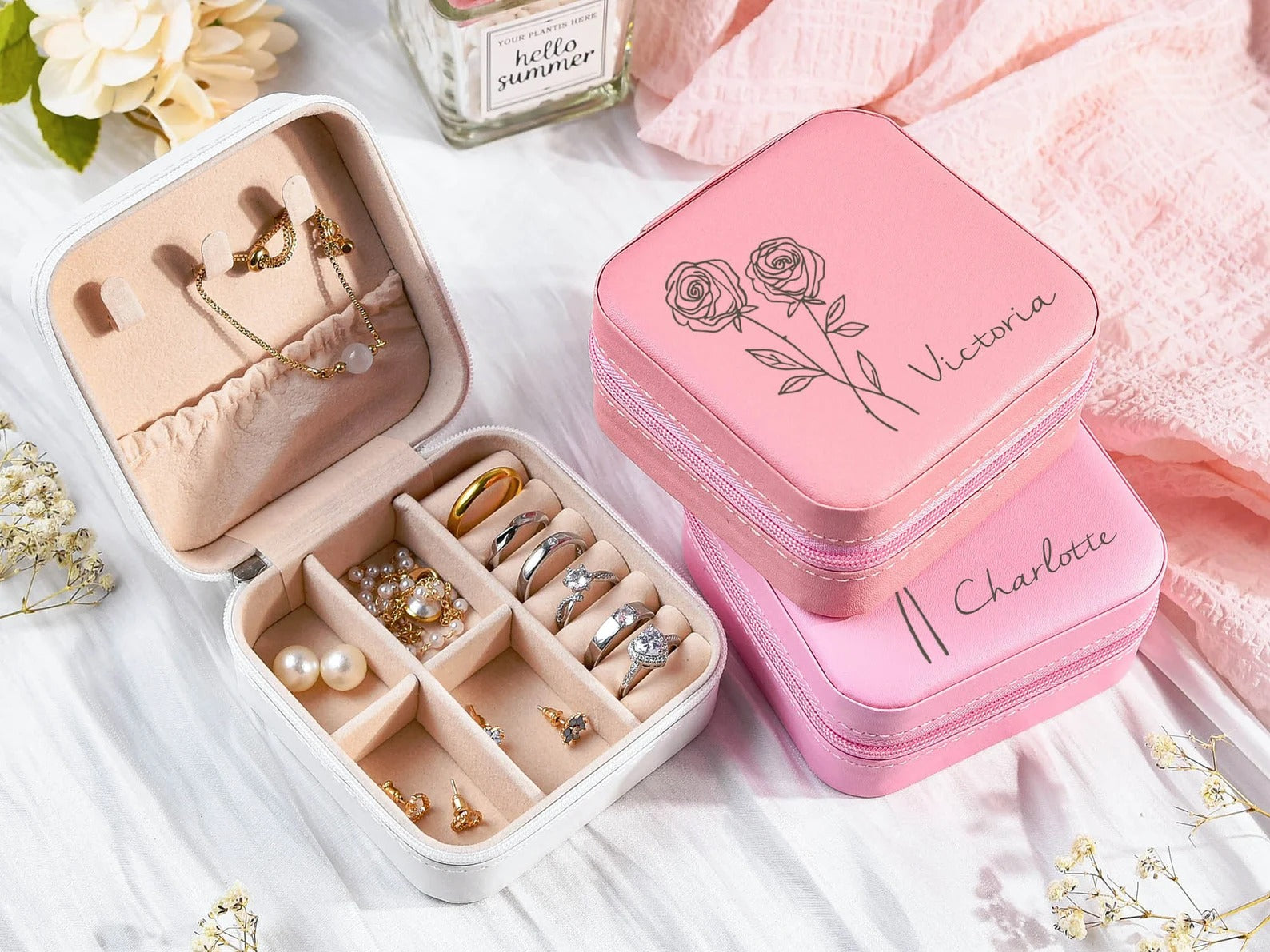 customised jewellery box | travel jewellery box | mini jewellery box for girls | floral print jewellery box | personalised jewellery box | jewellery organiser for travel | jewellery box with name | portable jewellery organiser | cute jewellery box for women | gift jewellery box for her