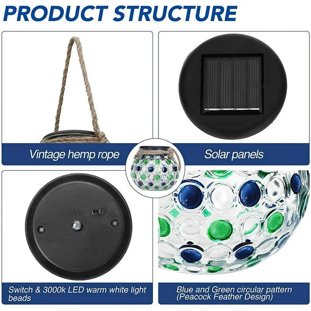 LED Solar Lanterns – Crackle Glass Ball Hanging Lights, Outdoor & Indoor Decorative Lighting (Pack of 2 Pcs )