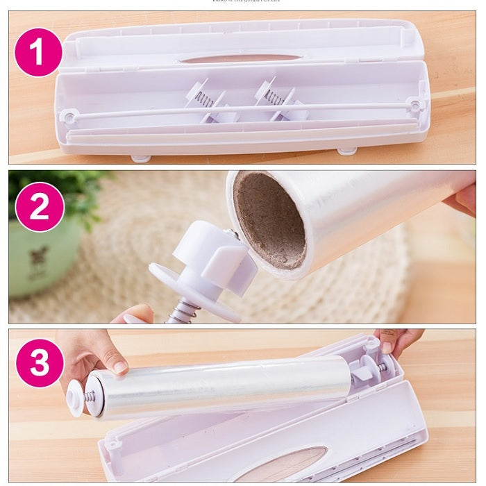 - Food Storage: Use the Wraplastic Food Wrap Dispenser to cut and dispense plastic wrap, aluminum foil, or parchment paper for wrapping leftovers, covering dishes, or preparing ingredients. The built-in cutter ensures a clean, straight edge for easy use.